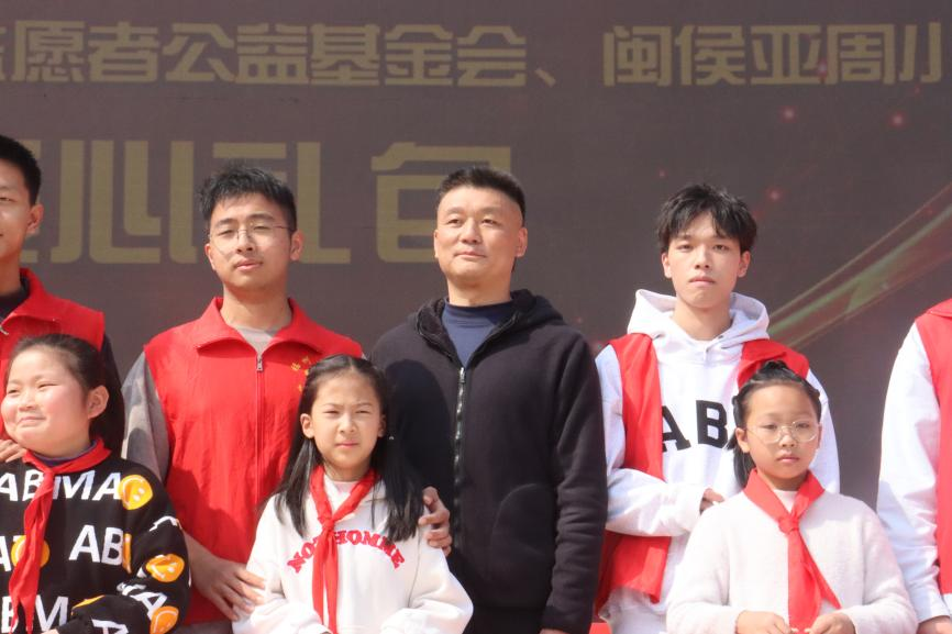 在聆听了青年志愿者的发言后,王群书记代表永利官网出席永利集团304am登录人文学院、福建省志愿者公益基金会、闽侯亚周小学三方承办的捐赠仪式。仪式上,志愿者们向小朋友们送出爱心大礼包,王群书记同其他代表一起按下开启福大志愿新纪元的按键,吹响人文志服新征程的号角。