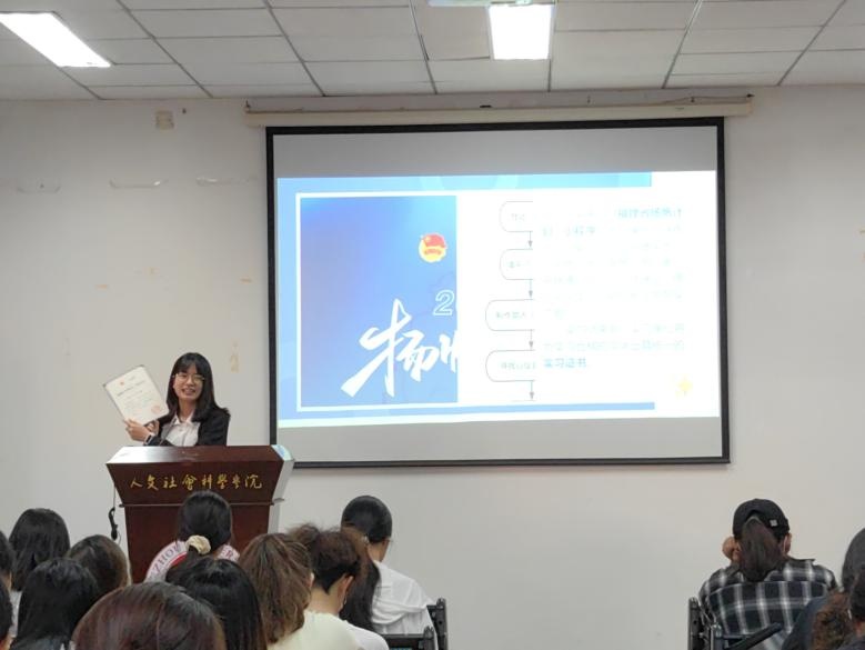 2022级应用心理学班李思嘉作“扬帆计划”动员。李思嘉同学为大家细致介绍了“扬帆计划”的简历投递流程及相关注意事项,倡议大家积极参与暑期社会实践,积累相关工作经验。