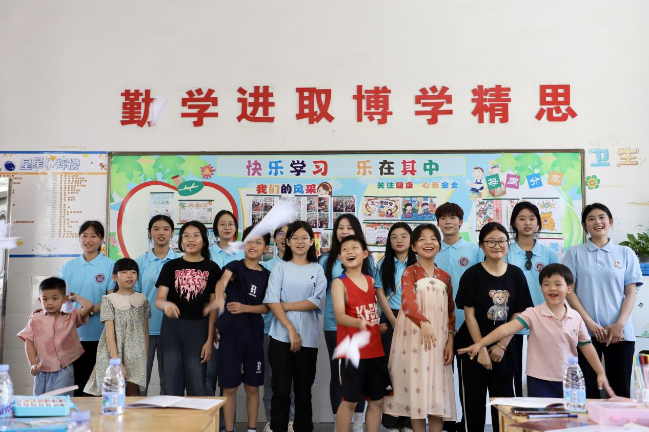 7月10日上午9时,实践队员们来到浔头小学,与前来参加心理团辅活动的孩子们亲切交流,并开展了击鼓传花、“压力纸飞机”、歌舞教学等趣味活动,让孩子们在欢声笑语中放飞烦恼,感受到陪伴与关爱。