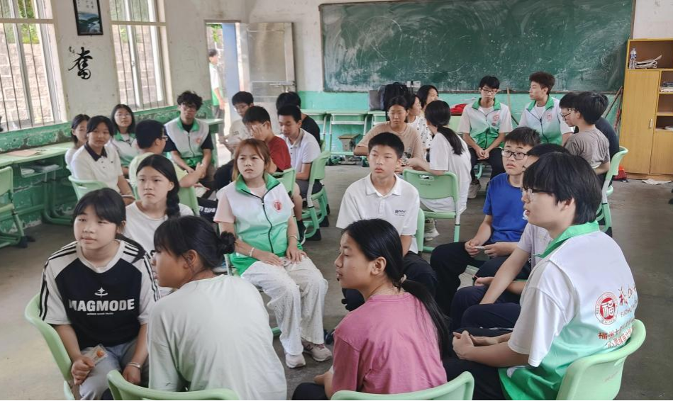 次日,在实践队指导老师江燕的带领下,实践队成员与甘棠初级中学的学生们开展了一场轻松愉快的见面会。在交谈中,江燕老师介绍本次支教活动的时间及相关安排。她表示,实践队全体成员将以自己的专业知识,帮助同学们提升心理健康水平,也会为学生们提供学业辅导,引导同学们更加积极地投入学习,以期提高学业成绩。
