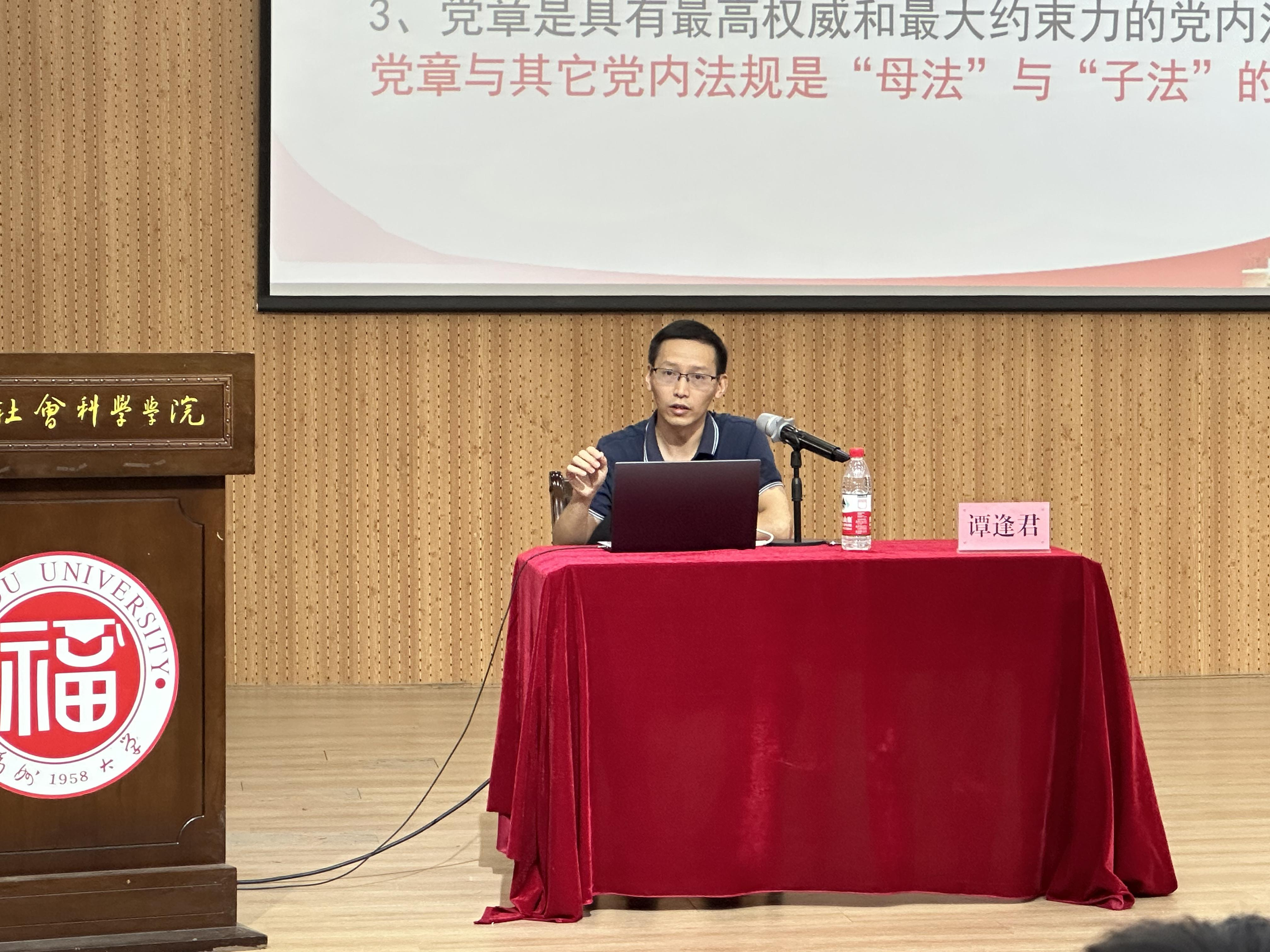谭逢君老师对《中国共产党章程》作概述,并带领同学们追溯党的历史,以时间为线索,对《中国共产党章程》历次制定及修正情况进行系统梳理。他指出,《中国共产党章程》是党内最基本和最高的政治行为规范,是中国共产党为实现党的纲领所制定的根本法规,是党的“宪法”。它凝聚了党的初心和使命,展现了共产党人的坚定信念和远大理想,对每一位党员都具有深远的教育意义。