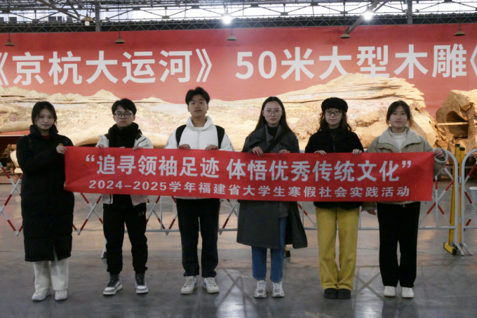 下午,实践队来到莆田美术馆,在讲解员的带领下参观由中国工艺美术大师郑春辉及其团队创作的长达120米的大型木雕作品《京杭大运河》。作品于2023年初开工,分为北方卷、中卷和江南卷三部分,至今已基本完成粗坯制作,迈入细化创作阶段。