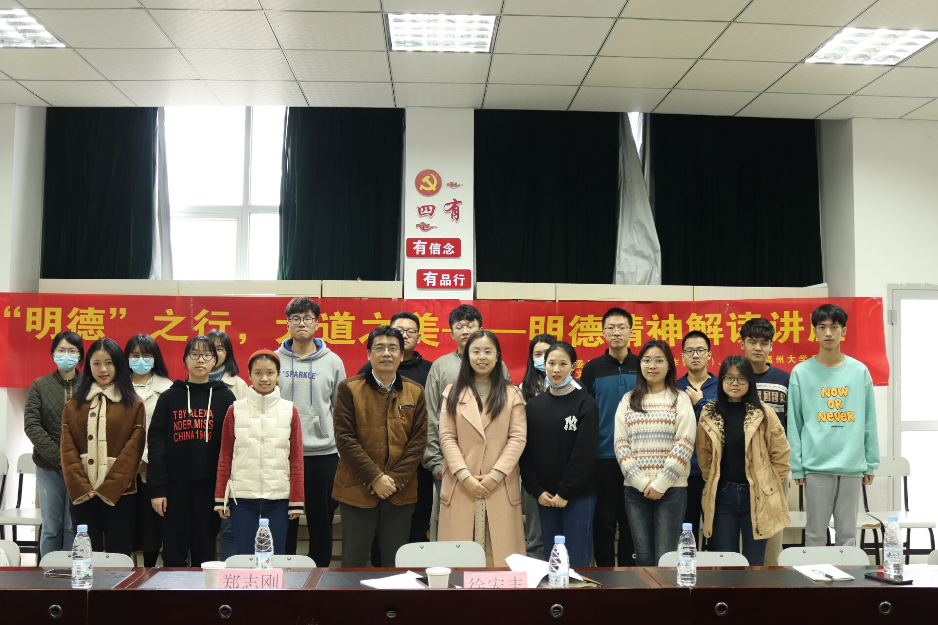 会议开始,徐宏志副处长先向学生代表们分享了自己从作为辅导员到引导同学们进行入党谈话,再到在学生工作处任职的经历,由实际出发,让同学们明白“明德”在大学生活中处处存在,值得大家用心留意。为了让同学们更好地了解“明德”精神,徐宏志副处长从历史、文字、道德等多角度展开,深入地谈及了什么是“明德”精神、如何培养“明德”精神、怎么实践“明德”精神等多个问题。除此之外,他还向同学们剖析了什么是“德”,以及“明德”在不同社会发展阶段下的不同的含义。他说:“人心惟危,道心惟微,惟精惟一,允执厥中。就是说,人心是危险难测的,道心是幽微难明的,只有自己一心一意,精诚恳切的秉行中正之道,才能治理好国家。我们大学生正是要发扬这种精神,明白是非曲折,投身于社会建设。”徐宏志副处长渊博的学识、幽默的话语,使得讲座不仅干货满满,而且生动有趣,参与本次讲座的学生代表们纷纷表示通过这次讲座对于校训有了更深入的了解,并有了清晰的未来发展方向,可谓受益匪浅。