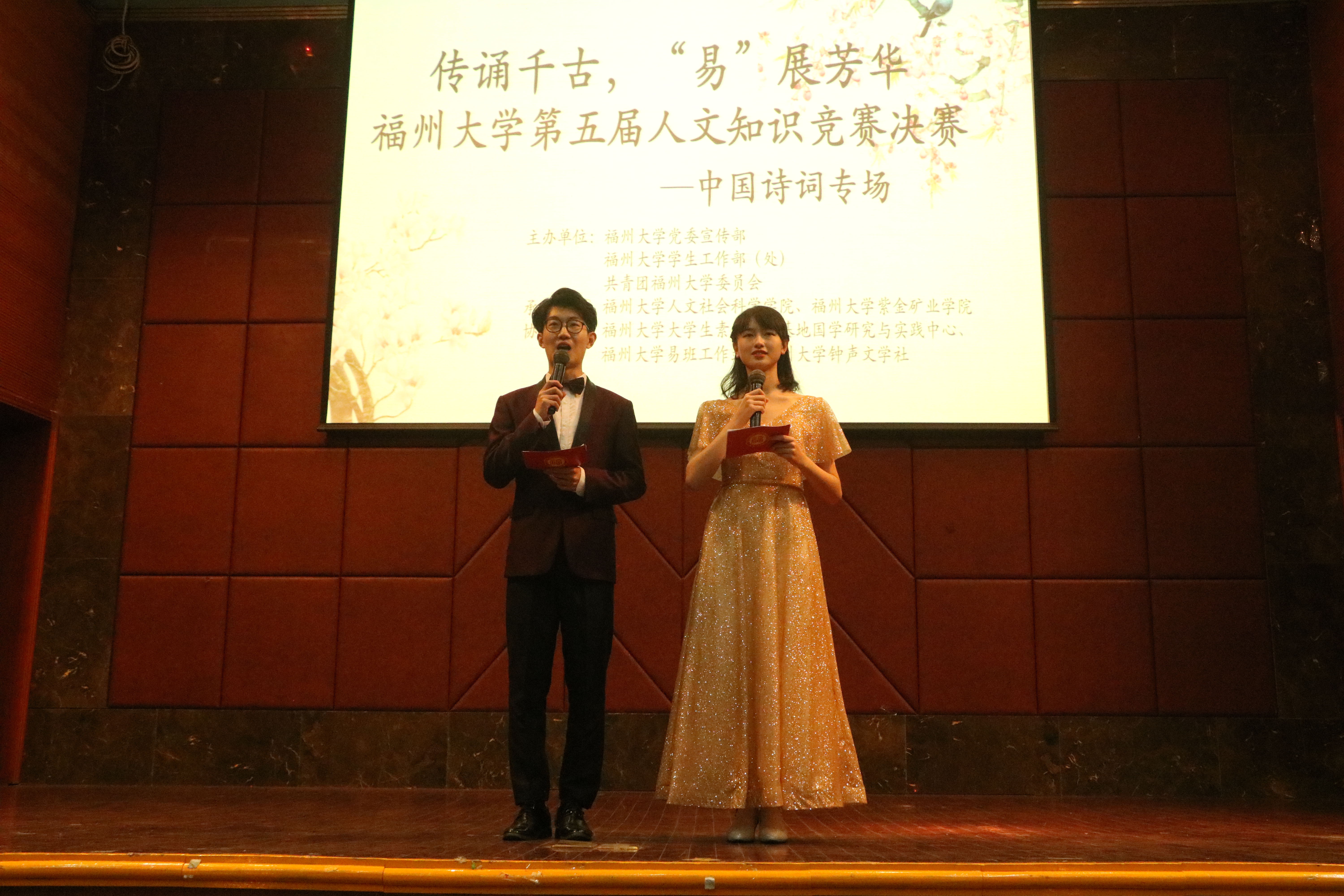 为响应十九大号召,坚定文化自信,弘扬中华优秀传统文化,12月20日晚七点,由永利集团304am登录党委宣传部、永利集团304am登录学生工作部(处)、共青团永利集团304am登录委员会主办,人文学院与紫金矿业学院承办的传统文化知识竞赛——“传诵千古,‘易’展芳华”中国诗词专场于嘉熙厅成功举办。紫金学院团委书记李金土老师,人文学院辅导员房菁老师出席本次比赛,人文学院汉语言文学专业吕景芳老师、上官文坤老师担任本次竞赛评委。