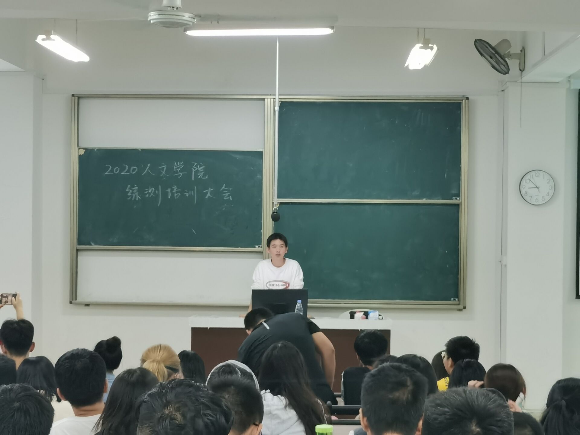 为使新生们深入了解综合测评制度,10月16日下午8点半,人文学院2020级新生综测培训大会于教学楼B313教室顺利召开。人文学院权益考评部部长郑余豪主讲此次培训大会,人文学院2020级全体同学参与大会。