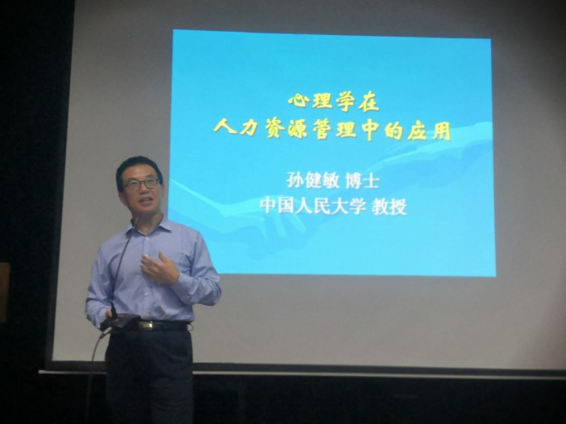 孙教授详细介绍了什么是心理学、什么是人力资源管理、心理学与人力资源管理的关系及其应用领域,系统分析了心理学和人力资源管理各自的短板和长处,以及心理学和人力资源管理在实际中的应用。孙教授的演讲幽默风趣、声情并茂、通俗易懂,十分接地气。他充满激情的演讲折服了在场的所有人,博得了现场听众阵阵热烈的掌声。听完讲座后,同学们纷纷表示表示不虚此行,受益匪浅。