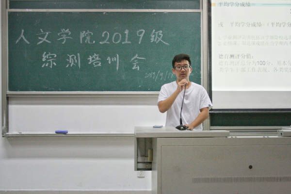 为使人文学院2019级新生全面了解综合测评制度,更好地明确大学学业成绩与能力提升的目标,9月18日晚7点,人文学院2019级新生综测培训大会于文科第二教学楼204顺利召开。人文学院权益考评部负责人郭冉主讲此次培训大会,对学院有关综合测评的制度进行了较为全面的展示和讲解。