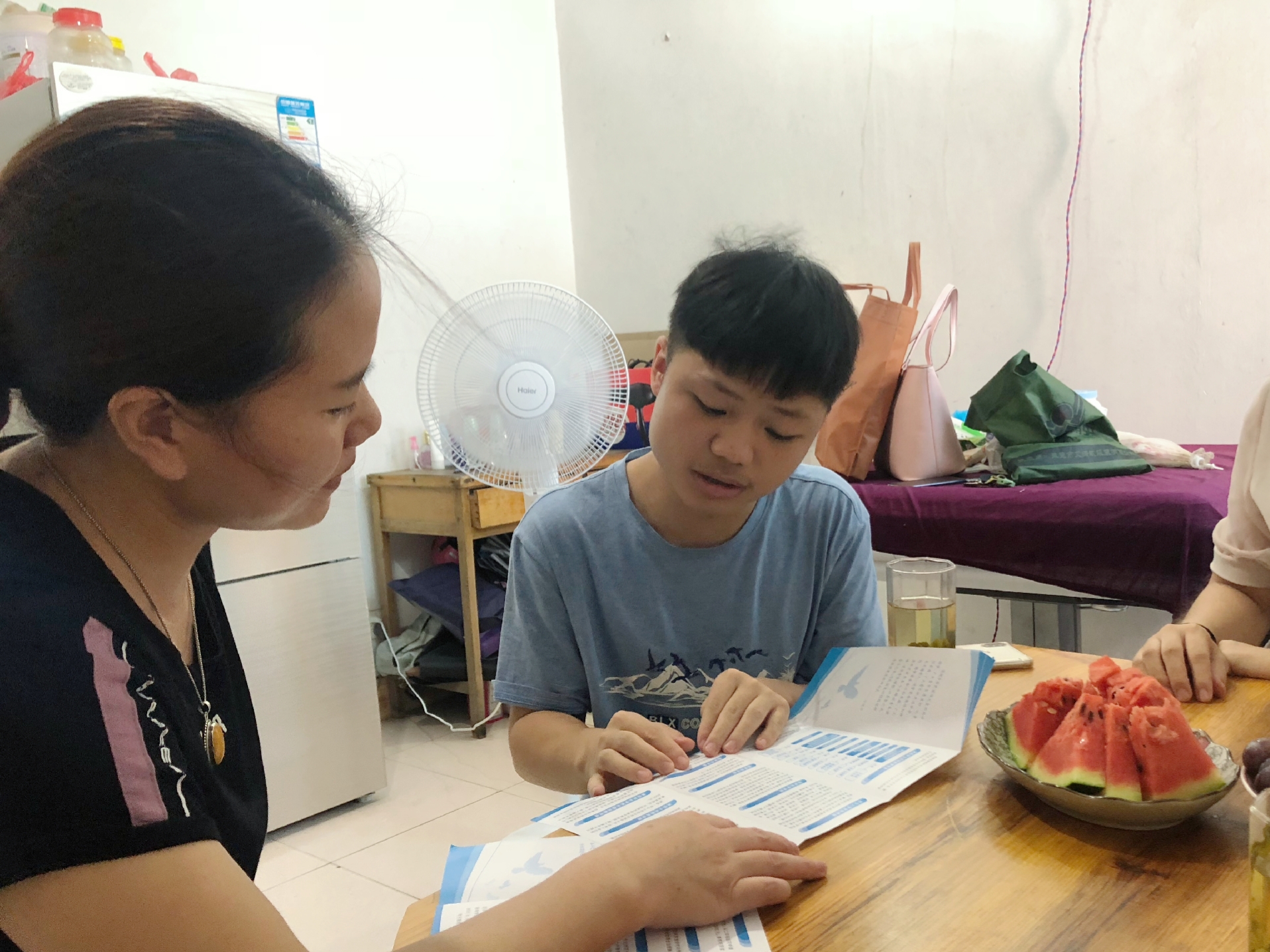 此外,资助政策入户宣传员许涵威同学采用派发宣传材料、现场讲解等方式,以通俗易懂的语言,向陈思涵同学及其家人详细地介绍了国家奖助学金、生源地助学贷款以及勤工助学岗位等由国家、学校实施的各项资助政策和措施。