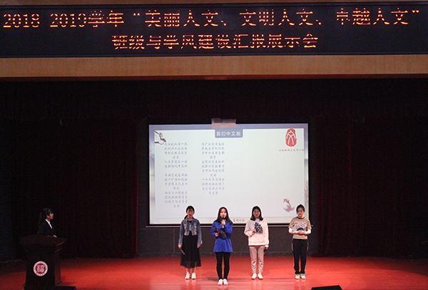展示会开始前,现场氛围热烈,台下观众充满期待,纷纷为各自的班级加油鼓劲。展示会上,18级中文班主题鲜明,重点展示了班级在入党推优、团立项等党团建设上的情况,最后以颇具古风的舞蹈收场,令人耳目一新。此外,18级应用心理学的同学们以情景重现的方式,形象生动地展示班级建设中的不足与整改的措施,通过让班级同学参与学风展示,展示了班级凝聚力。“扬群学尚,普社会华章”,16级社会学班展示了班级优秀的学习风貌,突出班级的诚信建设、生活、纪律以及班级资源的共享上所做的努力。各班特色不同,却共同突出了独特的人文风采。