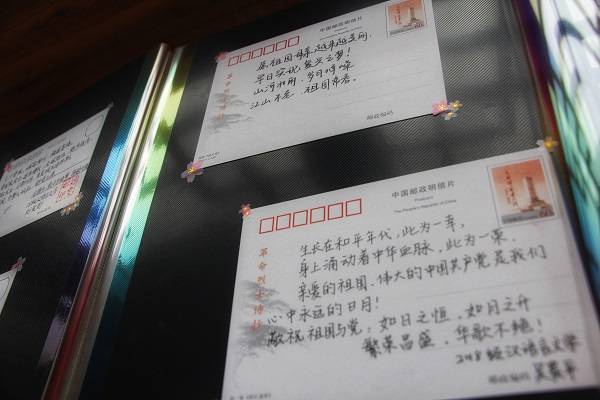 文字是表达感情含蓄而深沉的方式,文字同样具有超出语言的独特一面。此次活动面对本支部的团员,通过在明信片上手写对祖国的祝福,直接抒发了自己内心的情感。更值得一提的是,在明信片的背面印有国旗标志、革命语录、革命精神等图案,让每张小小的明信片上承载着厚重的情感。