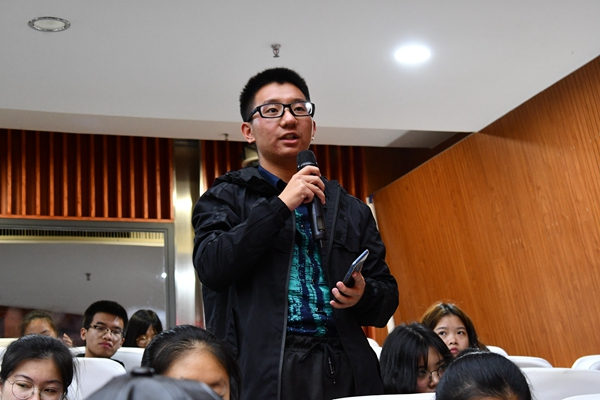 林守霖先生从大学生的犯罪行为与校园贷问题两个方面为主线,以一个个鲜活的案例为引子,剖析校园易发生的违法事件,向同学们普及法律知识与安全意识。林守霖先生为同学们分析了马加爵、药家鑫故意杀人事件与复旦投毒案,指出大学生犯罪的严重性。他表示大学生犯罪不仅会斩断个人美好前途,也会对家庭、社会带来沉重的影响。同时,林守霖先生强调了校园贷问题,他表示,校园贷诈骗的形式五花八门,同学们陷入校园贷的原因多种多样,而虚荣攀比心理是十分重要的原因。林守霖先生说道:“同学们当前的主要任务是学习和提升自己。同学们应当端正自己的三观,在相应的时间做正确的事!”