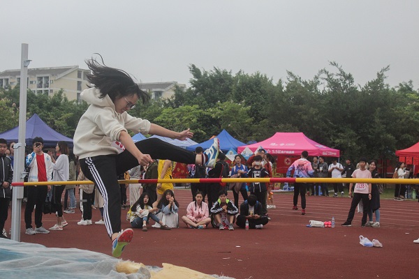 天空飘着小雨,对比赛选手造成了一定影响,但俞晓莉同学沉着冷静,以良好的心态克服不利条件,最终取得了1.25米的优异成绩,一举夺得银牌,为学院增添一份宝贵荣誉。值得一提的是,人文学院喻海柔同学也成功跳过1.20米的高度,位列第五。