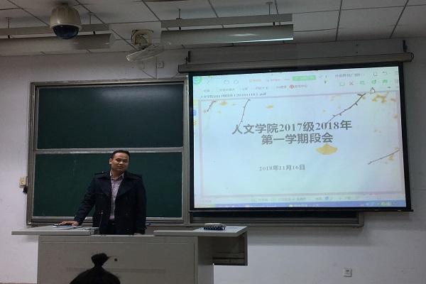 11月16日下午4点人文学院2017级年段会于文一104教室顺利召开,此次会议由2017级辅导员齐朝阳老师主持,全体2017级同学参加。