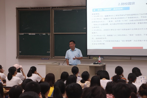 开学初期是学校发案高峰期,因此安全教育也是是学校工作的重点之一。祝老师结合之前的案例,提出了火灾、校园贷、传销、盗窃等常见的安全隐患类型。他举例盗窃事件发生的场所和原因,强调了防盗措施,提醒同学们注意好自身财物的妥善保管。此外,祝老师补充说明了打架斗殴等事件可能出现的问题,告诫新生与人交往需谨慎。新生同学们聚精会神地听老师讲解安全知识,并时不时的在小本子上记笔记。讲座接近尾声,陈老师告知新生保卫处电话,提醒新生遇到问题时要及时向保卫处求助。“这次讲座对我来说受益匪浅,我以后一定要对安全问题重视起来!”一位2018级的新生讲道。