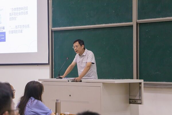 紧张的新生周即将落下帷幕,为了让同学们更好的适应大学生活,尽快找准自己在大学中的定位,人文学院于9月12日晚7点组织开展了“大学生三观教育”主题讲座,人文学院党委郑志刚副书记担任此次讲座主讲人,全体18级新生参加此次讲座。