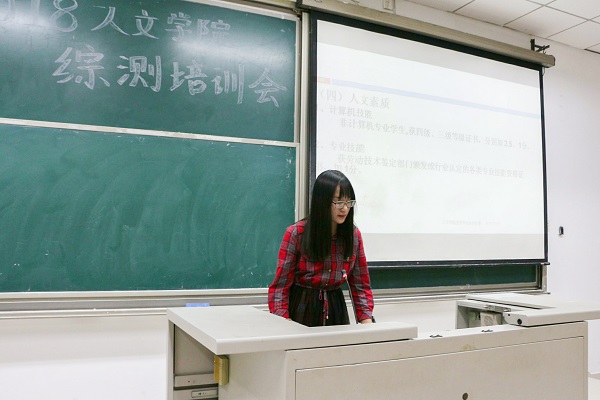 新生周已落下帷幕,为让同学们在紧张又充实的学习生活之余更好的了解综测相关知识,永利集团304am登录于9月29日晚7点组织开展综测培训活动。人文学院办公室吴珊珊同学担任此次培训的主讲人,人文学院18级全体新生参加此次培训。