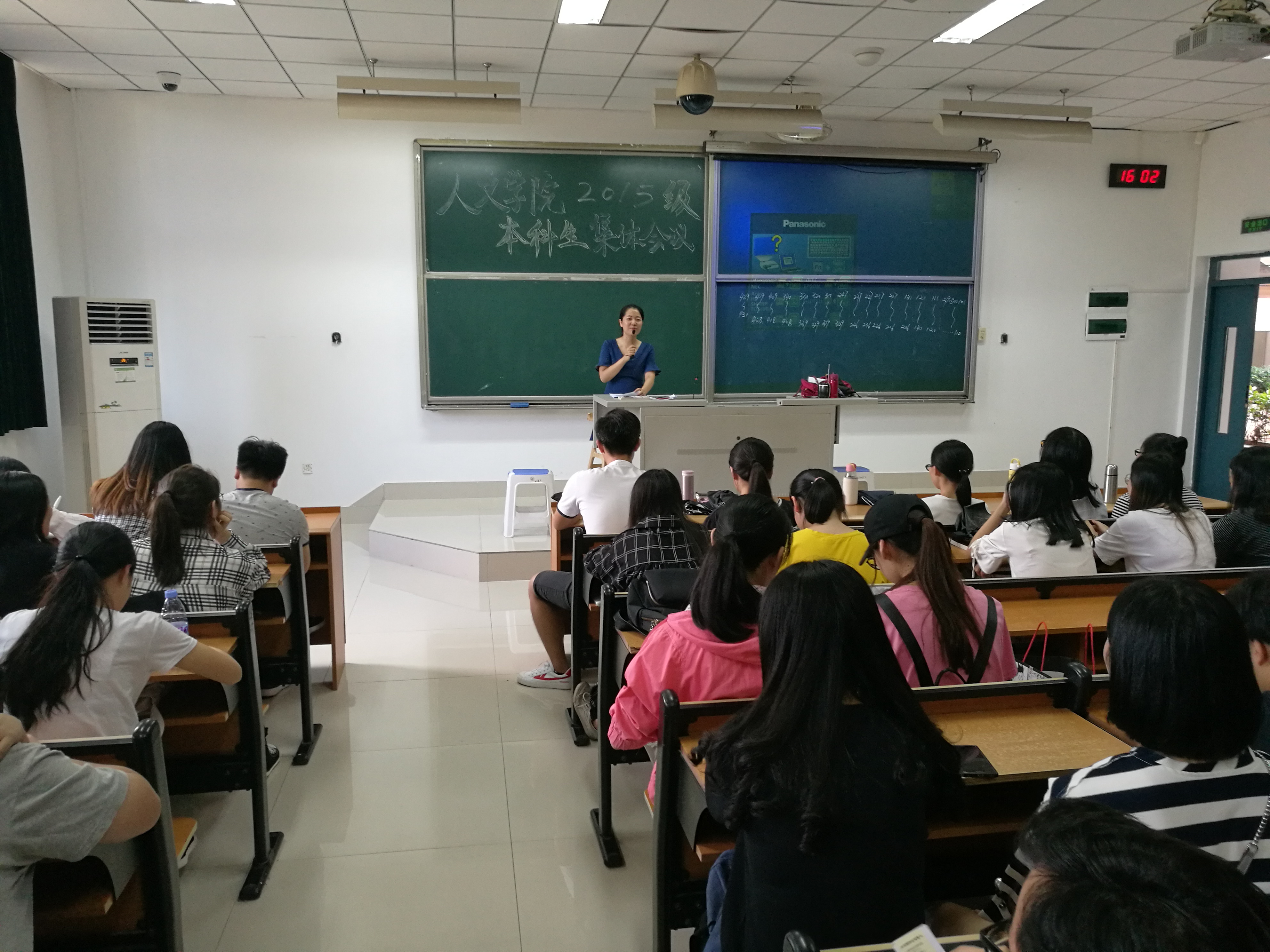 9月3日下午2点,人文学院2015级开学年段会于文二104教室顺利召开,会议由2015级辅导员王薇薇老师主持。