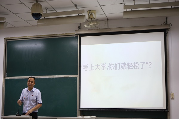 9月6日晚6点,人文学院于文2-105举办2018级新生年段会。此次段会由团委副书记齐朝阳老师主持,其向新加入人文大家庭的同学们介绍了自己,幽默风趣的讲话风格令教室内的气氛格外轻松,拉近了与同学们之间的距离。