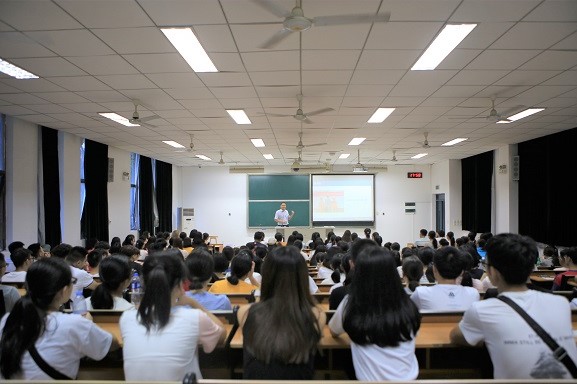 段会开始时,齐老师欢迎了新生的到来,并详细讲解了新生入学教育周的具体安排,希望同学们能更明确这一周的规划。由高中步入大学,齐老师强调新生应树立新的目标,学业上不应懈怠,课余时间可以考虑加入学生会、社团等,既锻炼能力提升自我,又丰富大学生活。齐老师也从学风建设上提出要求,希望同学们遵守学院要求,严格要求自己。“注重实践”、“积极主动”、“好好学习”、“创新创业”是齐老师为新生们提出的四个大学关键词,并祝愿同学们在大学阶段趁青春年少,多尝试多努力,成为更加优秀的自己!