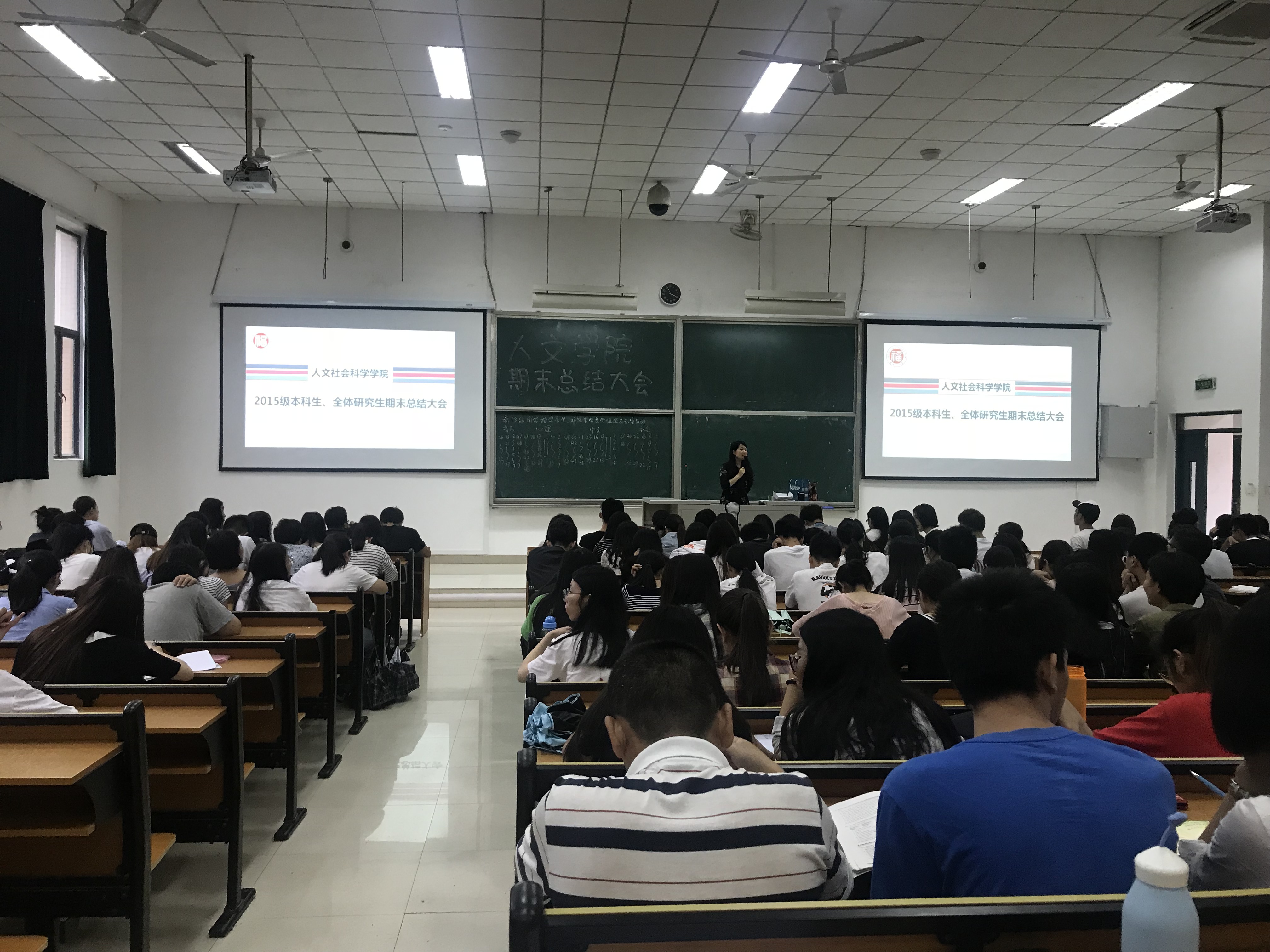 时光匆匆,转眼又是一学年结束,人文学院2015级本科生与全体研究生于6月14日下午3点50分在文科教学楼4-101召开期末总结大会。大会主持人由人文学院辅导员王薇薇老师担任。