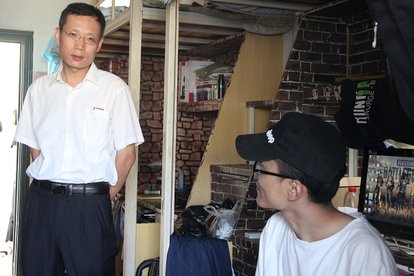 为营造安全舒适的宿舍环境,打造和谐美丽的人文大家庭,6月15日下午3点半,人文学院党委副书记郑志刚老师、团委副书记齐朝阳老师与社委会同学一起走入学生宿舍,开展安全、卫生检查,为同学们送去学院的温暖。