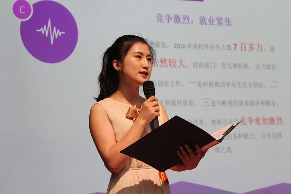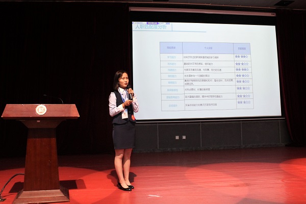 比赛中,参赛选手对自己的规划内容进行了全面细致的介绍,自信从容,各有风格。人文学院曾璐姚同学第一位出场,作为一名大一的学生她毫不怯场,借助如今高度发展的互联网,运用扫描二维码的方式给评委老师留下了深刻印象,新颖而不失心意。人文学院刘燕芬同学凭借自己主持人的经验在展示过程中展现了稳健的台风,并从自我探索、环境认知、职业内容、行动计划、评估调整5个方面具体介绍了自己的职业生涯规划。评委老师也根据两位选手的职业关键词提出相应的问题,并依据两位选手的回答给出了相应的建议,为选手以后的职业生涯规划提供宝贵的指导。在所有参赛选手展示完之后,信通集团人资行政总监郑曦老师上台致辞,为选手们提出了选择职业莫局限于自己的专业、大胆追求自己所想所求的建议,台下观众反应热烈。