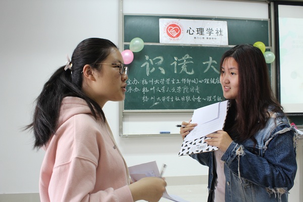 识别谎言,查清真相;心理游戏,走进内心。据悉,本次识谎大赛共100人参加,分为10个小组。虽是个人赛,但每个小组内部仍然进行了交流与合作。本次比赛以一个故事作为背景,小组成员各自扮演一个角色,通过发言、提问、并进行场外活动搜集线索,来观察组员的行为动作,从而判断出谁在说谎。