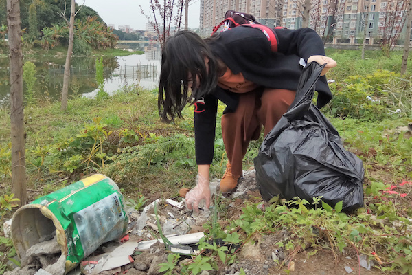 志愿者们到达闽江河畔后,立刻展开行动,相互协作,沿河岸拾捡垃圾。志愿者们认真仔细,一一将各类垃圾如废弃塑料袋、废纸、碎瓷器等收进垃圾袋。值得一提的是,除身体力行捡拾垃圾外,志愿者们注重环保观念的宣传,通过向附近居民分发环保宣传单并口述相关环保知识的方式,号召大家积极行动,从生活中的点滴小事做起,为恢复闽江母亲的“美丽容颜”贡献自己的力量。本次志愿活动历时近两个小时,河滩上大量堆积的垃圾发出的阵阵恶臭,给志愿活动增加不少难度,但志愿者们迎难而上,发扬“不怕脏不怕累”的志愿精神,展现了人文学子热心公益的责任担当与无私奉献的青年风采。