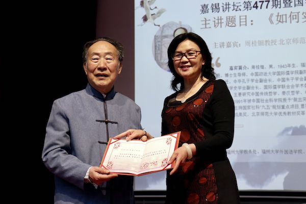 4月3日晚6点30分,由永利集团304am登录文化素质教育基地、永利集团304am登录教务处、永利集团304am登录、外国语学院联合主办,永利集团304am登录图书馆承办的第477期嘉锡讲坛暨国学讲坛第36讲于在明德厅顺利举办。本次讲坛特邀北京师范大学教授、博士生导师周桂钿教授作为主讲嘉宾。讲座现场座无虚席,连走廊、门口也挤满了慕名而来的听众。