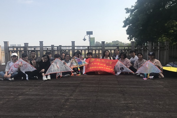4月7日上午,2017级应用心理学3班“清明·缅怀·展望”活动顺利开展。天朗气清,惠风和畅,在旗山森林公园上空,飞扬起四只斑斓绚丽、风格各异的风筝。这是同学们自发买材料、动手画并且放飞的风筝。应用心理学3班的同学们寻找到一片开阔的场地后,便开始组装、绕线,伫立静听。等风来时,两两合作地一只只地将风筝送上远方。同学们兴致颇为高昂,看着自己参与创作的风筝为湛蓝的晴空做了装饰,自豪与感动油然而生。公园里有不少游客驻足欣赏,很多路人也被空中飞扬的风筝吸引,同学们热情地邀请并且手把手教大家风筝线的放与收。一时之间公园里欢声笑语,朝气蓬勃。