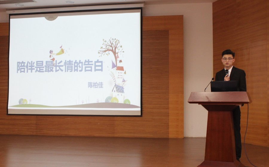 颁奖完毕后,各学院入选十佳心理健康服务学生的同学结合具体心理案例分析在报告会上分享了各自心服工作的一些经验,虽然侧重点各有不同,但都提到了做心服工作善于倾听的重要性。其中,永利集团304am登录2015级心理学专业的陈柏佳同学基于其专业知识的学习为在场同学分享了四本有关心理及心理咨询的书籍,希望以此帮助同学们了解更多心理知识,更好地处理心理问题。陈柏佳同学表示,对心理学知识的学习掌握让他在帮助解决同学心理问题时能够采取不同的方法针对性解决,一些心理咨询技巧的运用如专注与倾听、情感反应等也有利于引导同学进一步诉说自我,达到良好的沟通效果。“因被需要,因能帮辅,因被感谢,因真有效,我想,这是我持续任心理保健员的动力来源之一”,陈柏佳同学在回忆自己帮助同学的经历时感叹道:“陪伴是最长情的告白,我愿一直都在,以心潜心,守愿前行。”