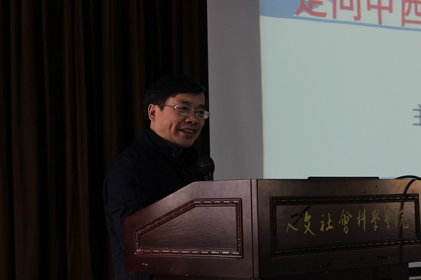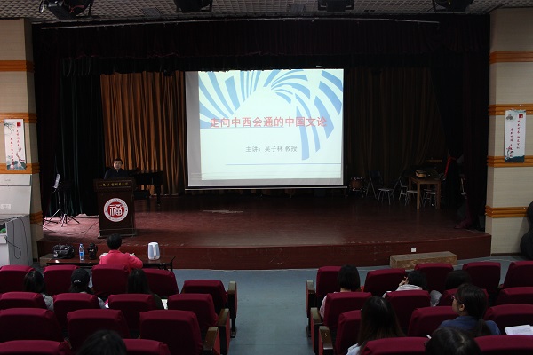 吴子林教授从自身求学经历出发,结合自己的心路历程,向大家分享自己关于中西方文论的研究成果,幽默风趣的语言、自然的亲和力成功吸引了学生们的注意。在深入探讨中西思维方式之差异时,吴子林教授将西方哲学家亚里士多德等的理论与中国儒家、道家理论主张加以对比分析,其讲解深入浅出,将抽象的理念化为平常的通俗语言,浅显易懂,加深了同学们对中西方思维方式差异的理解。同学们侧耳倾听,为吴子林教授的精彩讲解送上热烈的掌声。