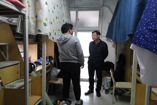 此次检查特别关注可能存在严重安全隐患的违规电器使用和私拉电线情况等,同时提醒同学们摆放好书桌物品,清洁宿舍地面。检查中,郑书记与考公和考研结束了的大四学生亲切地与其交谈,慰问考试情况,并询问下一步的职业打算和计划等,也强调大四了更要做好宿舍内务卫生。