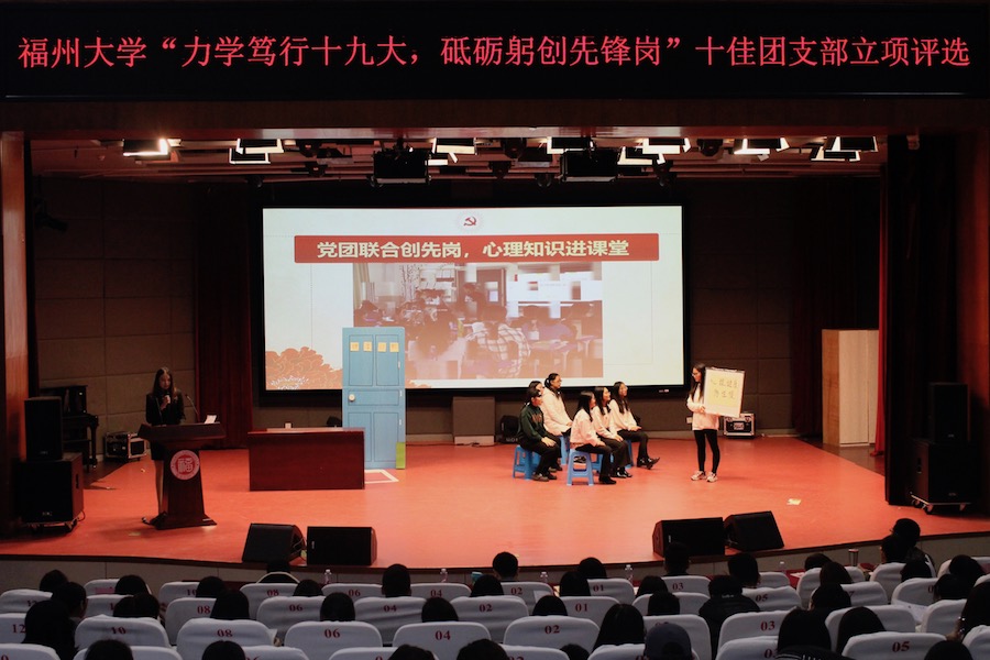 "青春笃行十九大,学以致用创先岗"永利集团304am登录2015级应用心理学3班团支部专注于心,学以致用,依据专业所学心理知识,开展多项团立项活动,并以情景剧形式进行汇报。其展示主要分为两个模块:一是“党团联合创先岗,心理知识进课堂”。心理3班团支部通过召开主题班会、组织多种小游戏等各类活动,向闽侯上街实验学校初中阶段学生普及性心理、青春期人际关系处理等相关知识,将心理知识带进课堂;二是“高校联合响号召,砥砺躬行促健康”,心理3班团支部在青春广场上特设心理咨询点,特邀心理咨询师为同学们舒缓压力,调整心态。此外,更有心理医学知识竞答活动让同学们掌握心理医学小知识,积极引导同学们更健康的生活。