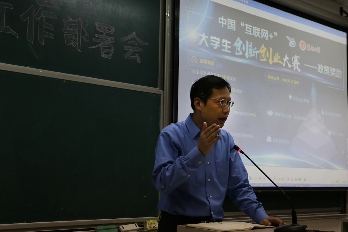 “参加大学生创新创业大赛给我带来了什么?荣誉、团队、能力和眼界。”大会一开始,参与“互联网+”创新创业大赛的战狼军校团队的代表陈思涵同学发表赛后感言。她用自己参赛以来努力奋斗的故事鼓励大学生们投身于创新创业的时代浪潮之中。在场同学纷纷为其精彩发言报以热烈的掌声。郑志刚副书记与叶阁泽老师也积极鼓励同学们创新创业,其发言各有侧重——郑志刚副书记强调了创新创业对人才培养的重要性,希望人文学子结合本学院特点做出更加优秀的创新创业项目。叶阁泽书记则为人文 学子进一步介绍了“互联网+”大学生创新创业大赛的具体流程、时间安排、政策支持等,用成功的项目案例解析,并鼓励同学们充分利用专业特点挖掘公益创业项目。