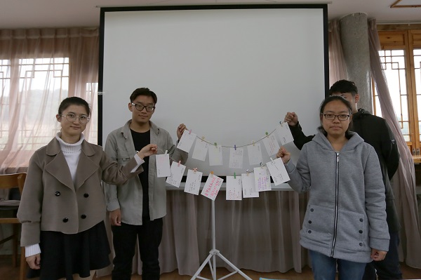 活动伊始,一段关于“群体性孤独”的TED演讲向在场同学抛出话题,引导大家探究科技在带给人们便捷的同时对其人际交往甚至心理状态带来的负面影响,引发参与活动的同学进行深入思考。此次活动不同于单方面的说教,更注重集体参与,互动性较强——现场同学以班级为单位进行分组,进行手机收纳袋DIY与明信片的绘制。值得一提的是,在DIY手机收纳袋环节,各组成员积极讨论,分工有序,一个个创意满满、美观实用的作品令所有人眼前一亮。2016级和2017级的同学将绘制手机收纳袋进行展示,并和现场的同学分享了自己对“手机依赖症”的认识和对合理使用智能手机等电子设备的建议。活动最后同学们也将合理使用手机的建议写在明信片上,携手向全院师生发出倡议。