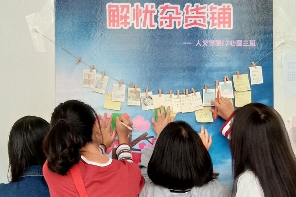 “解忧杂货店,以吾之笔,解汝之忧。”一块彩板、几段细绳,永利集团304am登录17级应用心理学3班的“解忧杂货铺”于11月12日到11月22日在永利集团304am登录玫瑰园一楼门口“开张”。