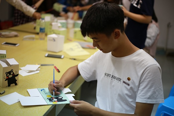 为响应十九大绿色环保理念的号召,为同学们提供干净整洁的图书馆自习环境,11月5日,永利集团304am登录2017级社会学1班团支部带领团内成员利用旧卡纸制作垃圾盒并在其上手绘熊本熊等卡通图案形象进行包装。