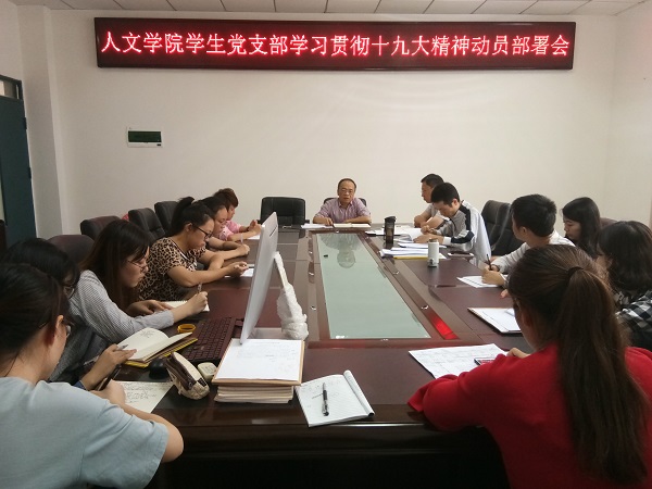 会前,林秋生书记带领与会人员共同学习了党的十九大精神。他强调,全体师生听党话、跟党走,在学习宣传贯彻党的十九大精神上做到四点:一要增强四个意识,把学习宣传贯彻十九大精神作为当前和今后的头等大事,始终在思想上、行动上,将十九大精神作为思想武器和行动指南。二要采取各种学习宣传形式,掀起学习宣传十九大精神热潮。相关支部要广泛利用各种活动阵地,结合支部主题党日、主题班团会等形式开展学习,撰写学习心得体会。三要紧密联系学院实际,开展适合人文学院的主题实践活动。四是学习宣传贯彻党的十九大精神,基础在学,关键在做,重在落实、重在实效,以行动彰显模范。各党支部要将十九大精神贯彻到学习、工作、生活等各项工作中,提升工作能力、水平和学院的学科建设,使学院各项工作再上新台阶,更好为中国特色社会主义服务,更好为实现中华民族伟大复兴中国梦作出自己的贡献。