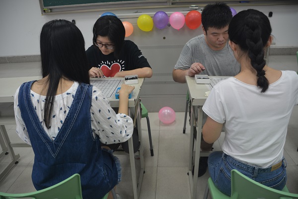 场务人员精心布置赛场,五颜六色的气球缓解了紧张的赛场气氛。本次比赛项目分为五子棋、围棋和象棋,有线下和线上两种比赛形式,共23位参赛人员,以抽签方式选择对手,两两对决,晋级者继续下一轮挑战。比赛开始,各位参赛选手屏气凝神,迅速调整好自己的状态,开始一场智慧的博弈。围棋赛场、象棋赛场安静肃穆,参赛选手个个眉头紧皱,全神贯注,五子棋赛场则是另一番景象,赛场氛围轻松愉悦。可谓:“观棋不语真君子,落棋无悔大丈夫。”观众们虽然为参赛选手们紧张着急,却也保持着作为一个观棋者的基本素养。经过多轮对决,最终颜聪同学获得围棋赛第一名、杨超同学获得象棋赛第一名、陈楠鑫同学获得五子棋赛第一名。