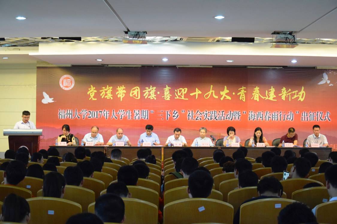 6月30日上午,永利集团304am登录2017年大学生暑期“三下乡”社会实践活动暨“海西春雨行动”出征仪式在旗山校区大学生素质拓展中心学术报告厅顺利举行。伴随着雄浑嘹亮的国歌声,出征仪式正式开始。