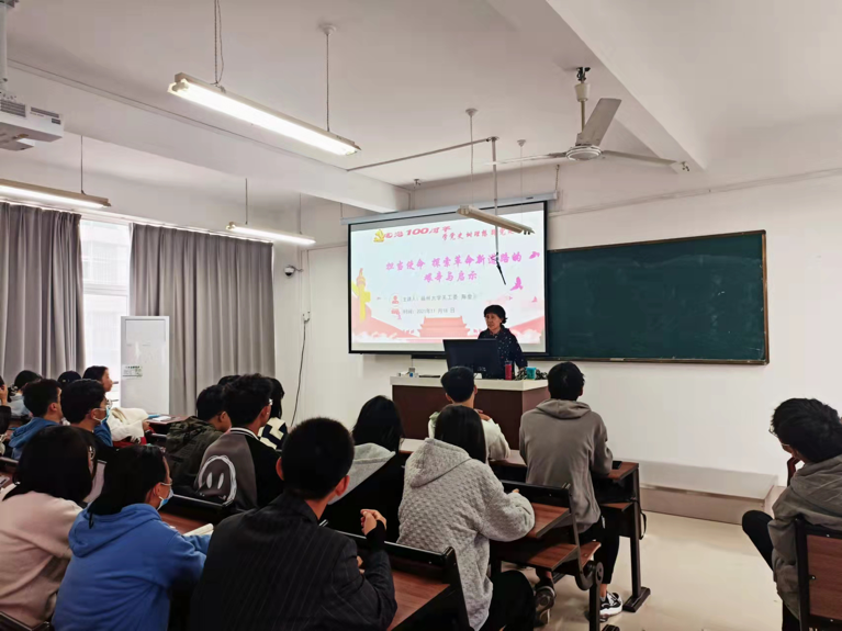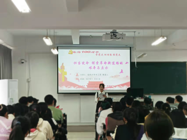 铭记百年路,奋进新征程。陈爱玉教授以中国共产党探索革命新道路的几个重要时间节点为切入口,生动回顾了我们党筚路蓝缕的百年奋斗史,对中国共产党在各个紧要关头采取的解决办法进行了独到阐释。几个“为什么”“怎么做”启发现场同学进行深入思考,系统总结了中国共产党开辟革命新道路的经验启示。