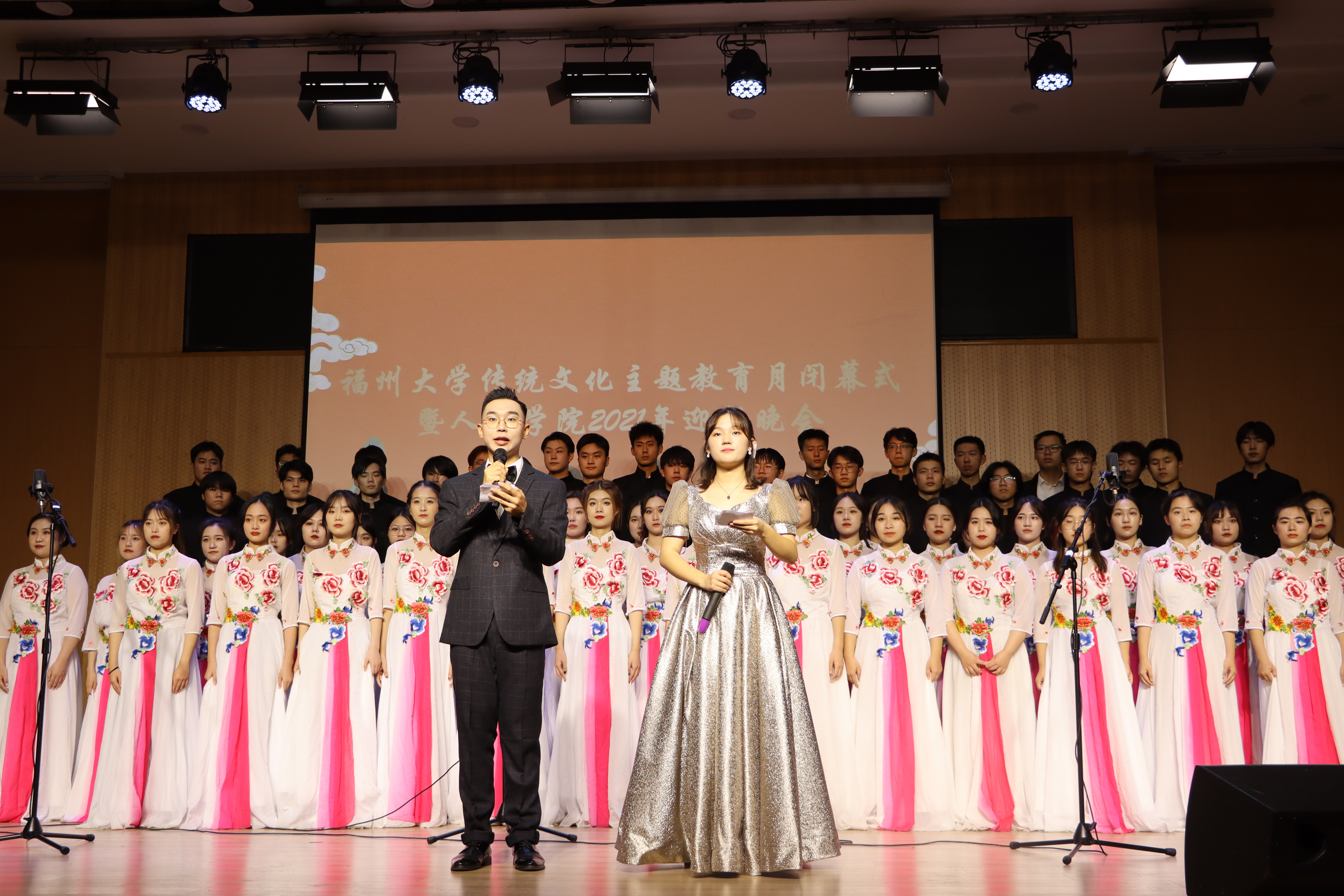 11月29日晚七点,“传承经典·守正创新”永利集团304am登录传统文化主题教育月闭幕式暨人文学院2021年迎新晚会在旗山校区艺术实践基地隆重举行。人文学院党委王群书记、团委齐朝阳书记、辅导员房菁、李益僮与人文学院学生代表齐聚一堂,共赏精彩节目。