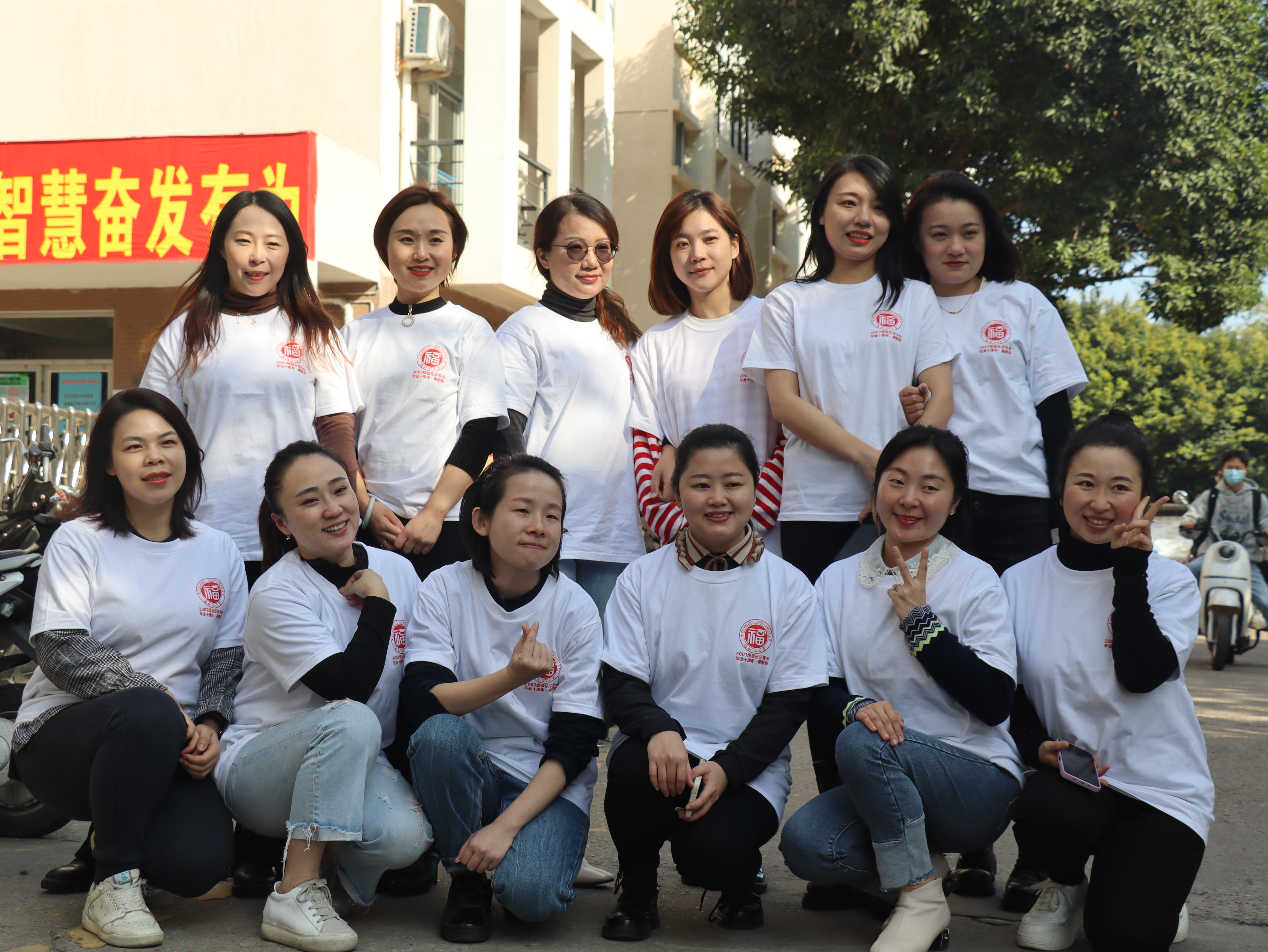 12月4日,永利集团304am登录07级音乐学15位校友返回母校参观。下午1点,校友们穿着整齐划一的白色定制T恤到达学校。T恤上印了永利集团304am登录校徽,校友们说到,这算是一个小小的仪式感。