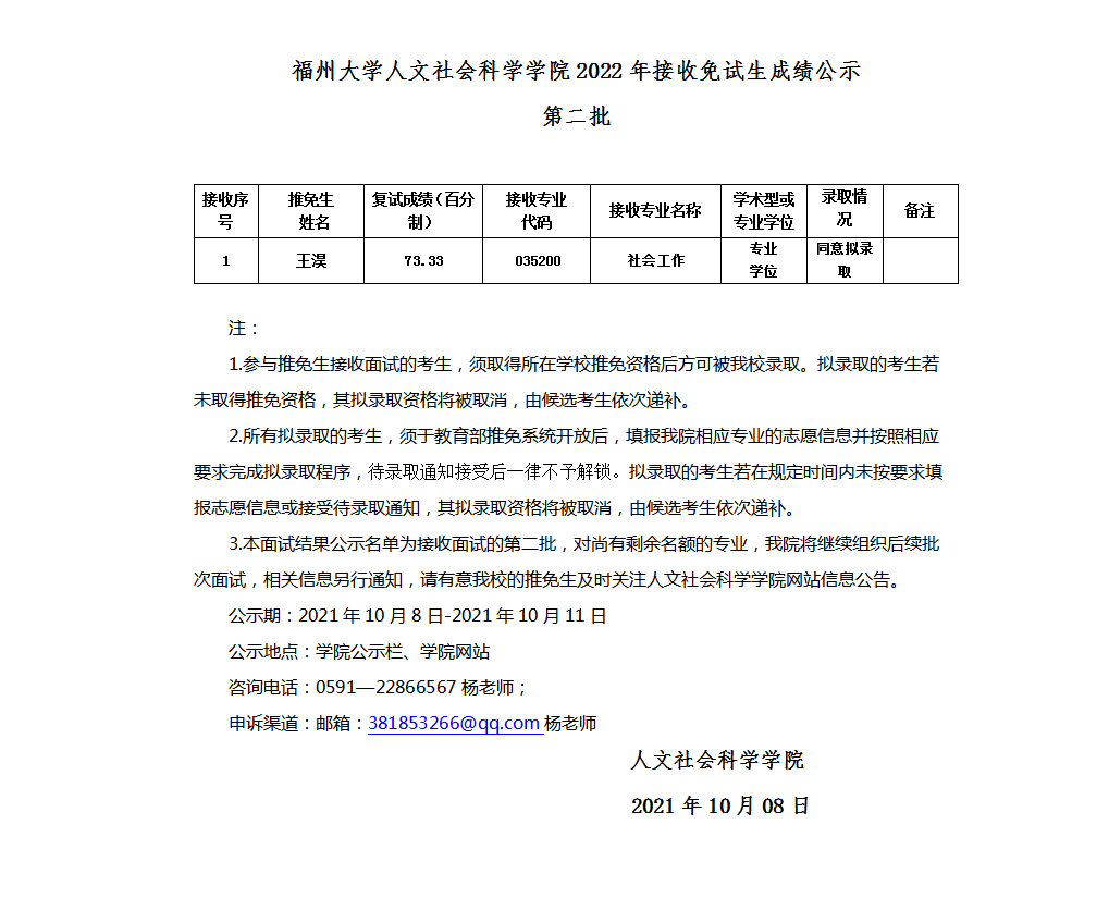 永利集团304am登录2022年接收免试生成绩公示 第二批