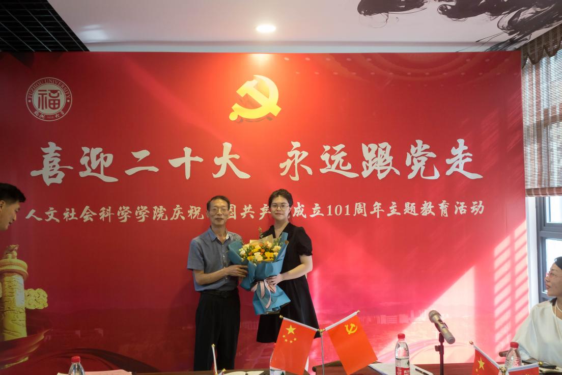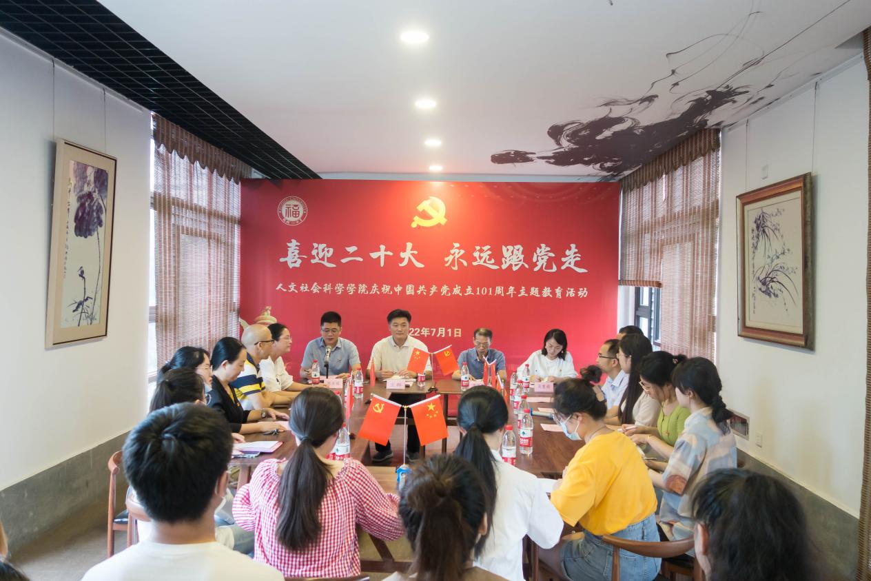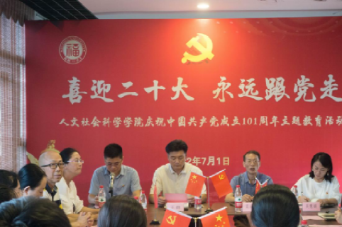 为庆祝中国共产党成立101周年,7月1日下午,人文学院在传统文化馆隆重举行“喜迎二十大,永远跟党走”主题教育活动,人文学院关工委常务副主任吴兴南教授、院党委王群书记、院长吴慧娟教授、院党委副书记陈永福教授、院纪委委员赵陵波教授、院长助理甘满堂教授、院长助理何朝银副教授及师生党员代表参加本次座谈会,会议由院党委副书记陈永福教授主持。