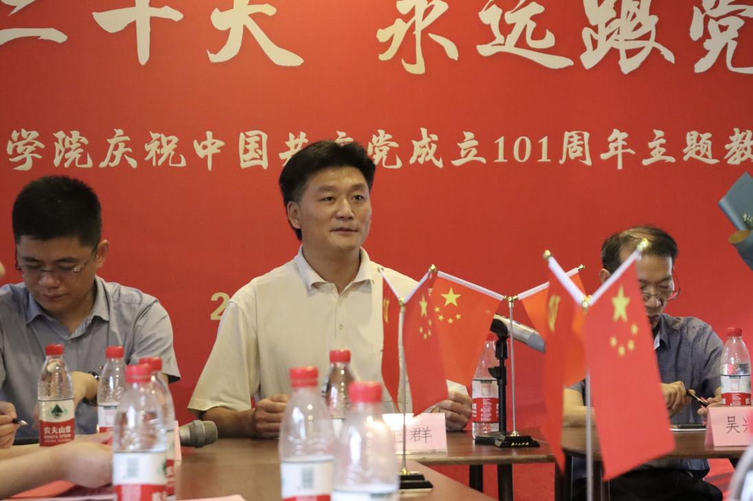 在座谈会的最后,学院党委王群书记作了总结讲话,提出了三点希望和要求:一是党组织要更多组织学习和教育,深刻认识到思想道德教育工作的重要性和紧迫性,不仅要重视党员数量的多少,更要重视党员质量的培养;二是党员个人要提高自己的修养,做有内涵的党员,在群众中树立起自己的形象,充分发挥好党员的先锋模范作用;三是要充分重视方法论在实践中的运用,青年要将自己这个小我融入祖国这个大我中,将自己的青春融入祖国的脉搏,充分发挥好专业优势,促进学科交叉融合,用心创造更多文学作品和艺术作品,传承红色基因,发展红色文化,领航新时代。