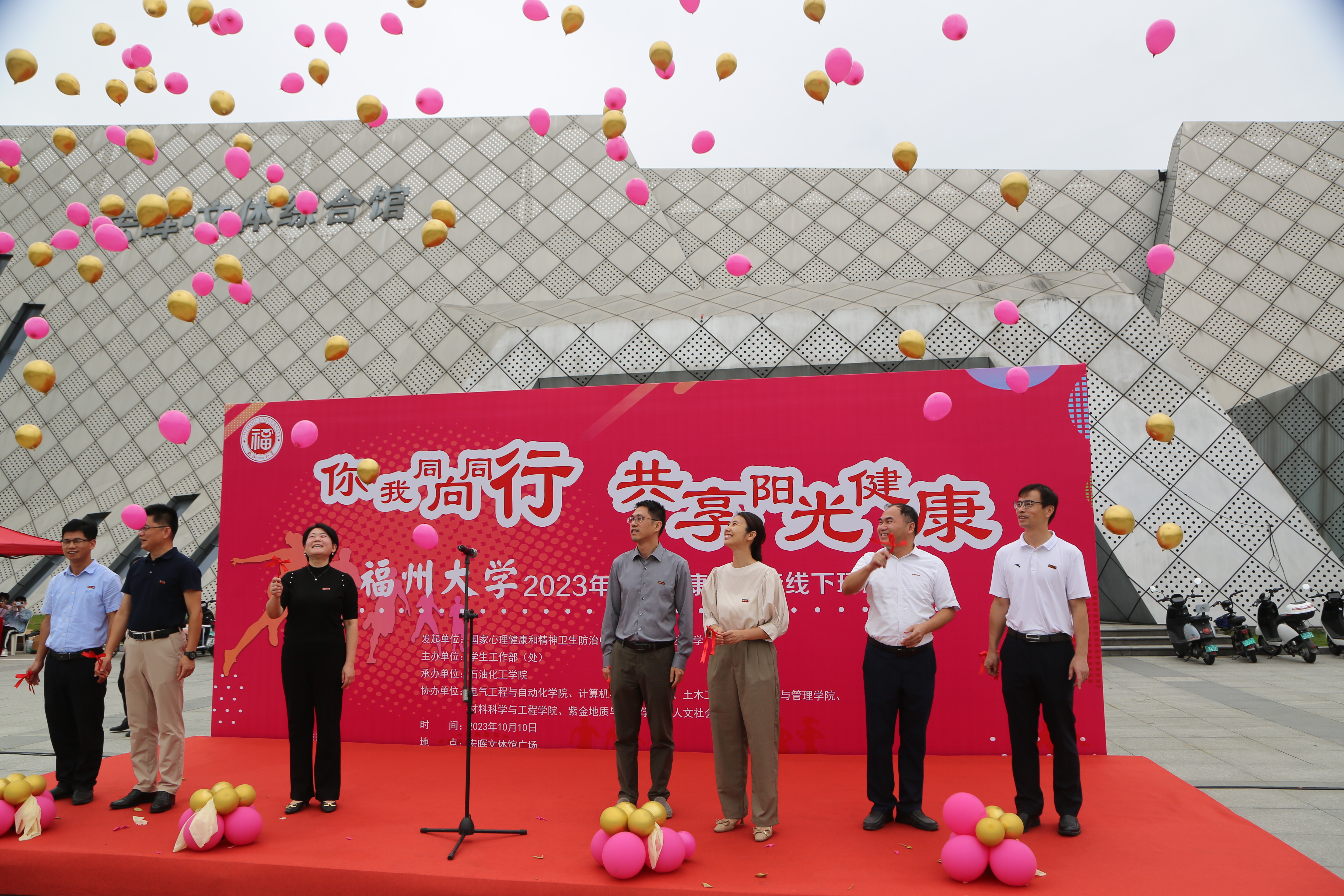 适逢第32个世界精神卫生日,为积极响应国家心理健康和精神卫生防治中心发起的心理健康校园行活动,10月10日上午,永利集团304am登录2023年心理健康校园行线下环跑活动启动仪式在宏晖文体综合馆前隆重举行。校学生工作部(处)部(处)长张红、石油化工学院党委副书记蒋林娟、电气工程与自动化学院党委副书记钟钛申、计算机与大数据学院党委副书记傅茂松、土木工程学院党委副书记郑寿、紫金地质与矿业学院党委副书记张志雄、永利集团304am登录党委副书记陈永福出席仪式,永利集团304am登录心理中心全体专职教师、各学院心理辅导员与部分同学参与了本次启动仪式。